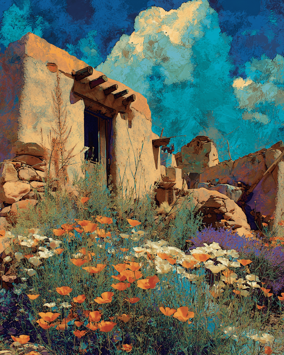 Adobe House in Spring – Southwestern Still-Life Home Decor Wall Art