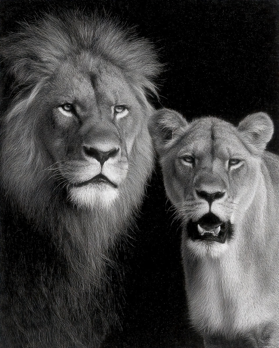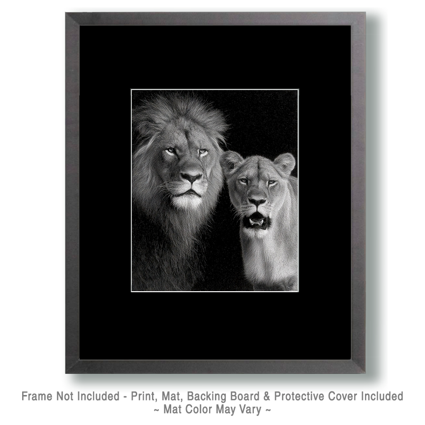 African Lion Couple – Black and White Wildlife Art Print