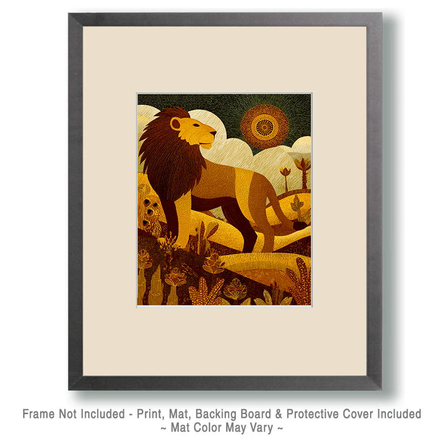 African Lion Folk Art Big Cats Home Decor Wall Art