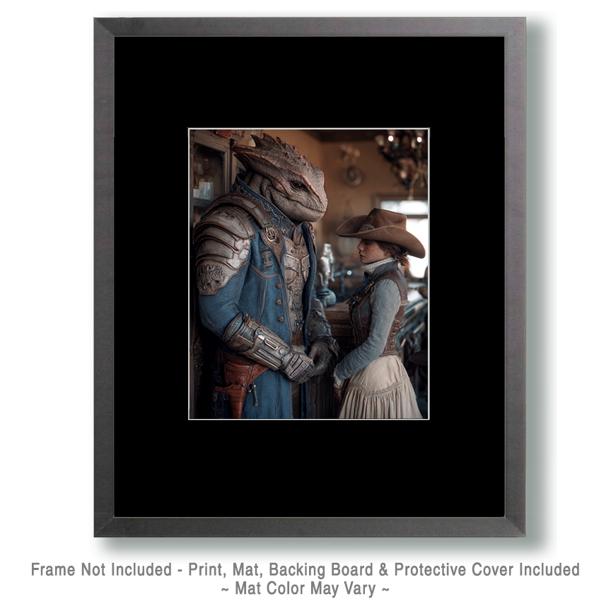 Cowgirl Asking Enceladus Extraterrestrial Soldier for Help – Alien Decor