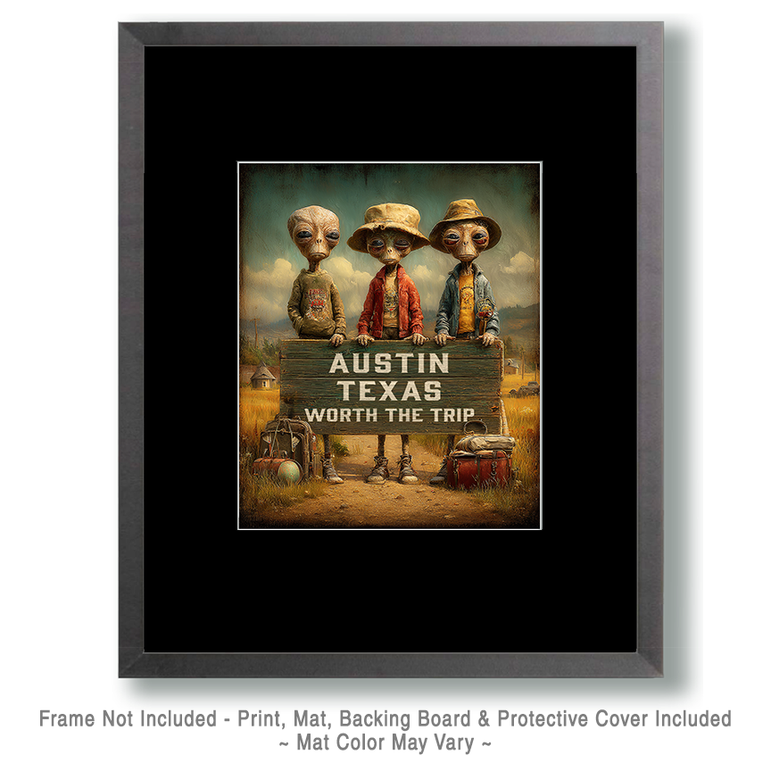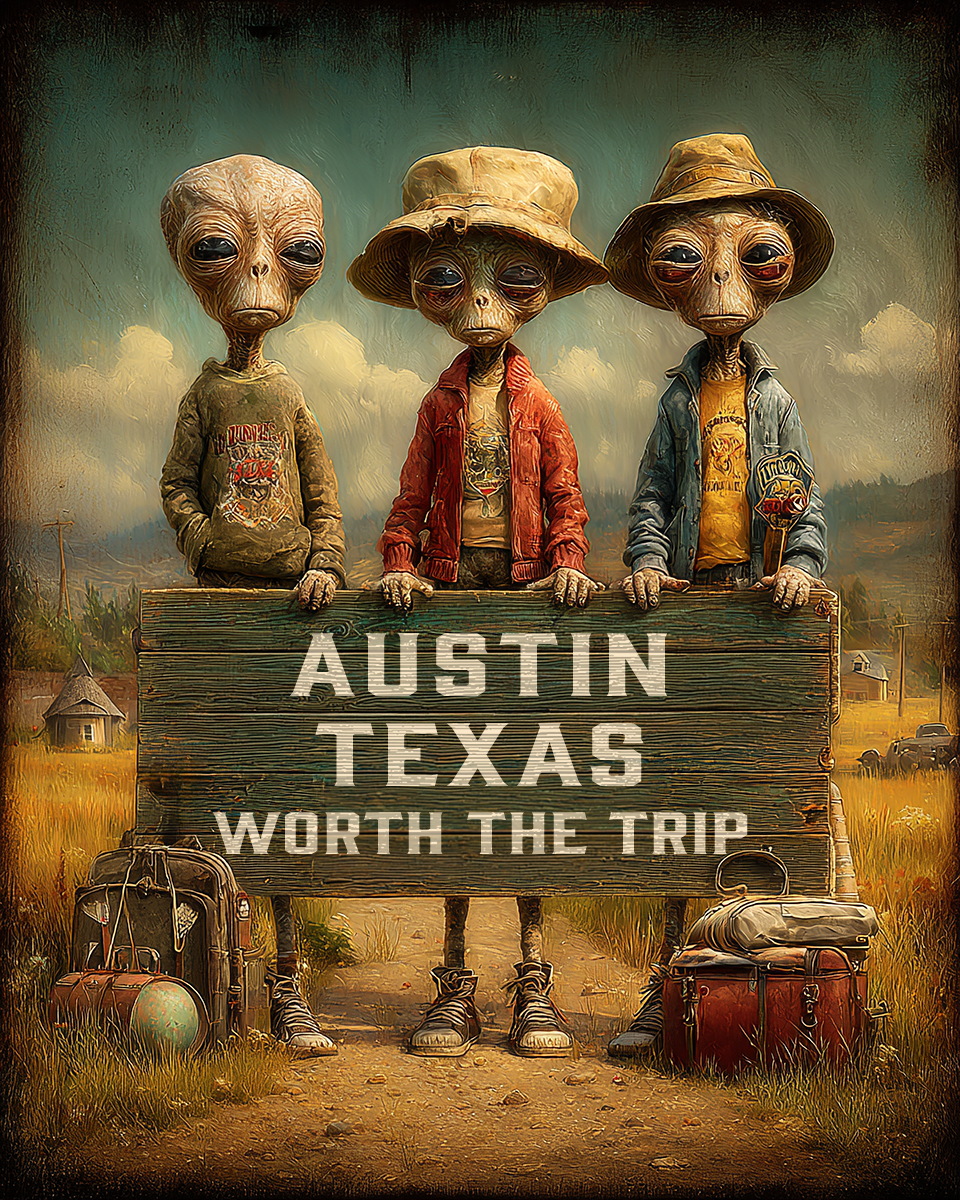 Aliens Worth The Trip – Austin, Texas Souvenir Art Print