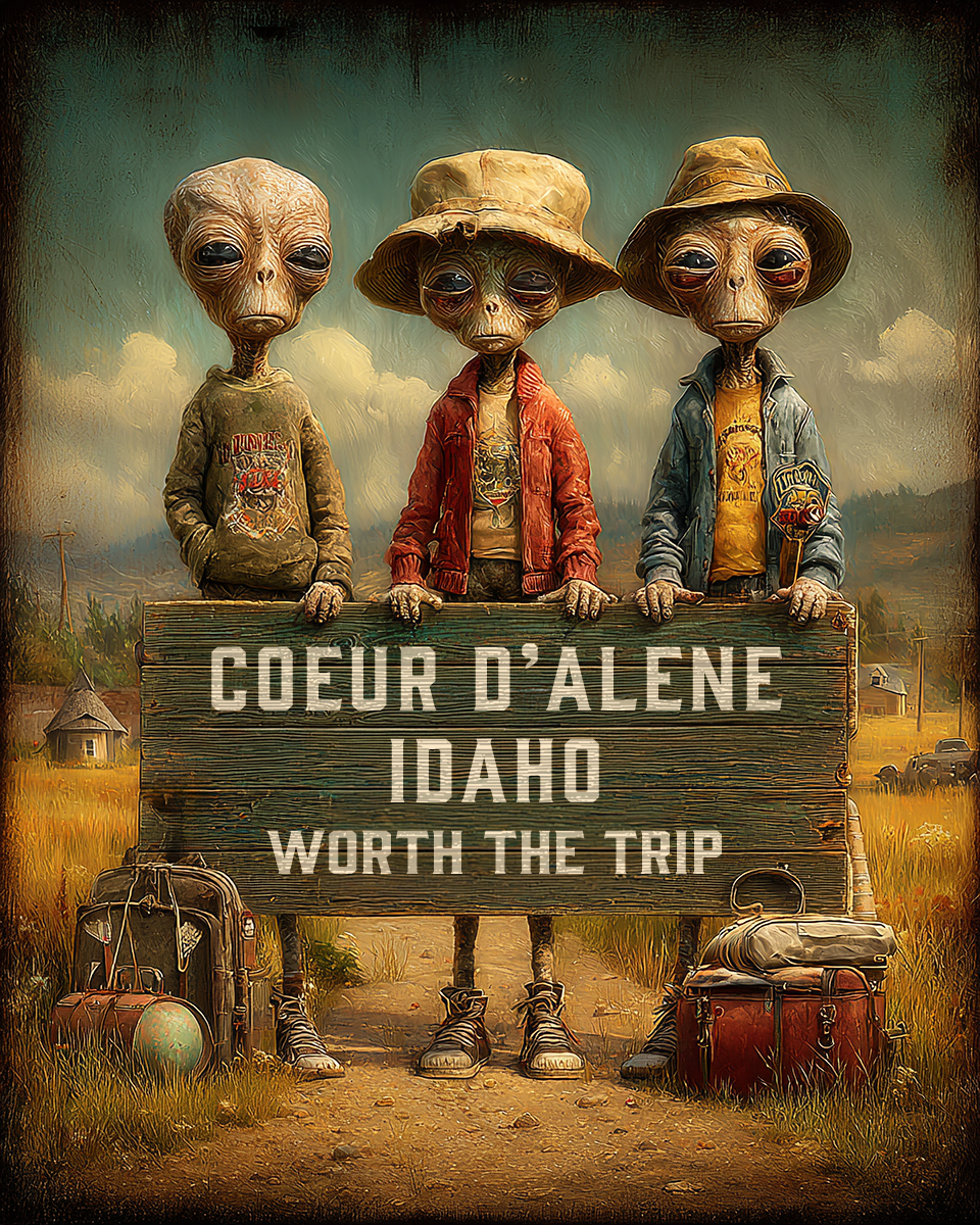 Aliens Worth The Trip – Coeur d’Alene, Idaho Souvenir Art Print