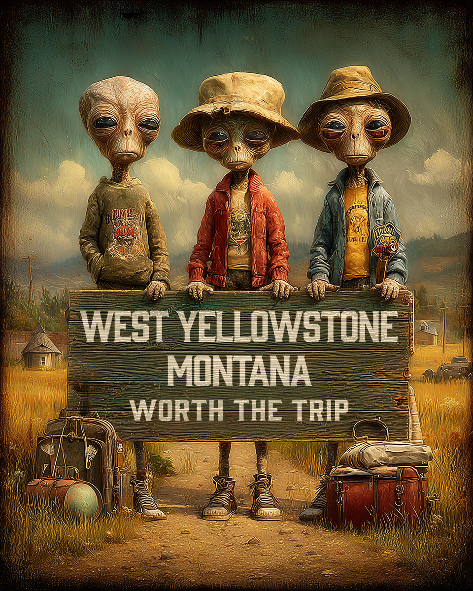 Aliens Worth The Trip – West Yellowstone, Montana Souvenir Art Print