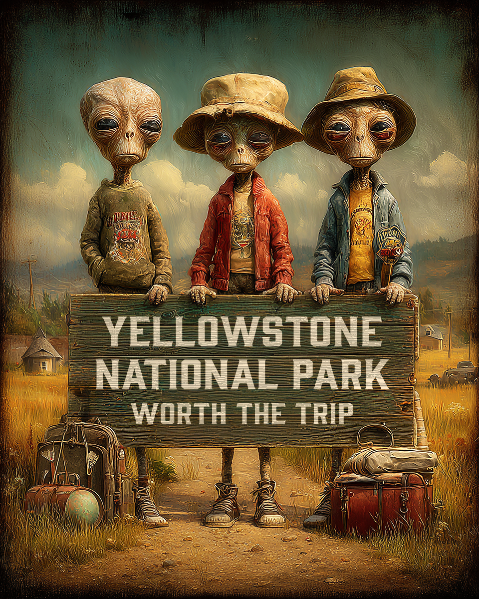 Aliens Worth The Trip – Yellowstone Natinal Park Souvenir Art Print