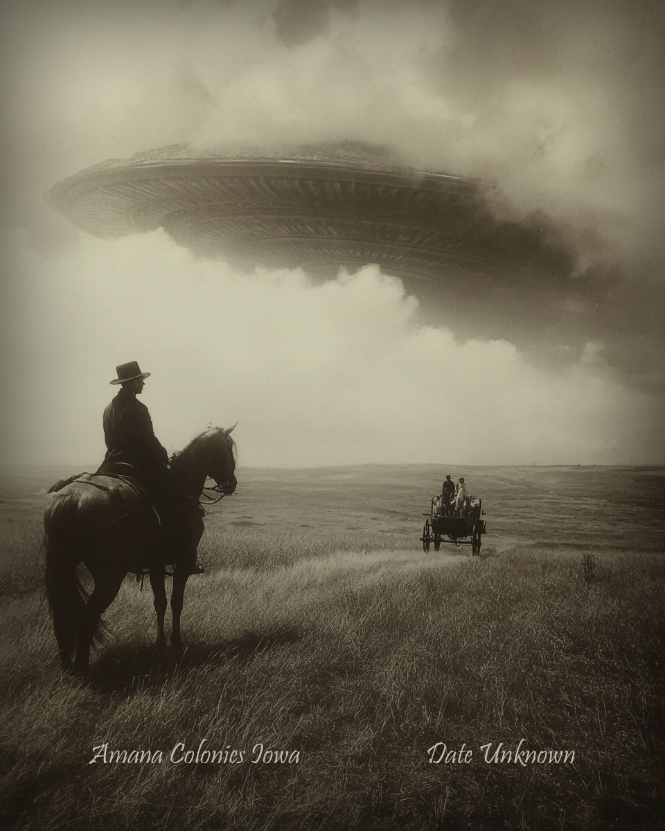 Amana Colonies, Iowa – Alien Flying Saucer Appears – Vintage Style Agriculture Cryptid Photo