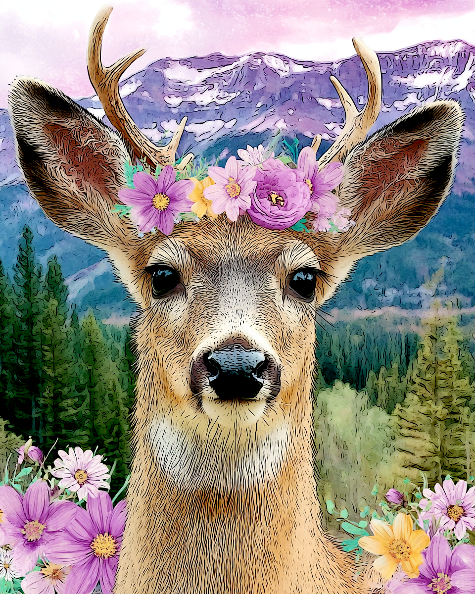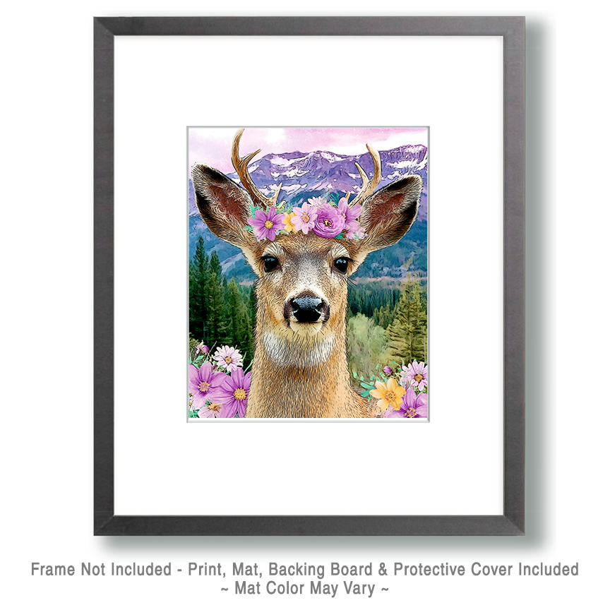 Young Buck Deer with Pink Flower Crown – American Southwest Wall Art