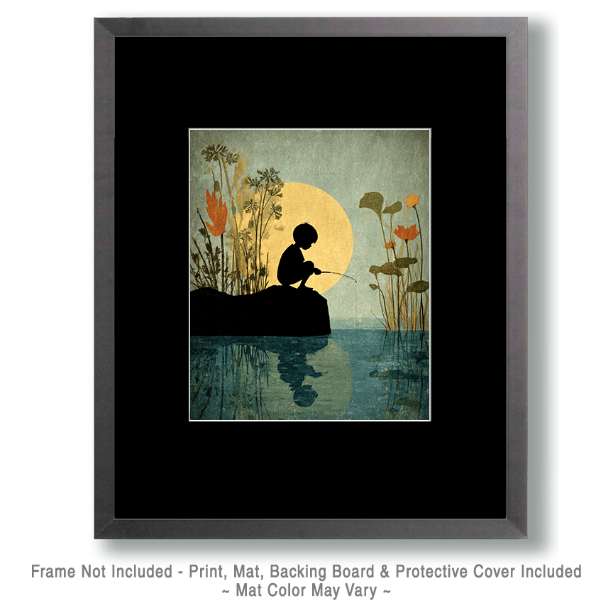 Art prints featuring kids fishing capture nostalgia, simplicity, and outdoor family moments, making these heartwarming kids fishing art prints an instant emotional connection for shoppers. This timeless fishing wall art performs especially well as lake house decor, outdoor family art, and a meaningful fishing gift, giving retailers a wholesome, giftable item that sells year-round.