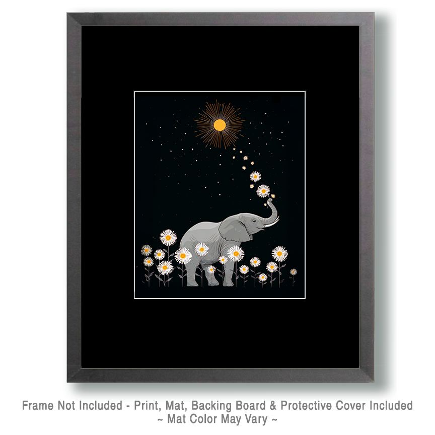 Whimsical Elephant and Daisies – Animals Dressed Like Humans Wall Art
