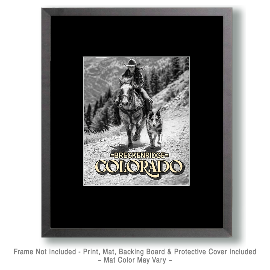 Antique Style Cowgirl and Dog – Breckenridge, Colorado Souvenir Art Print