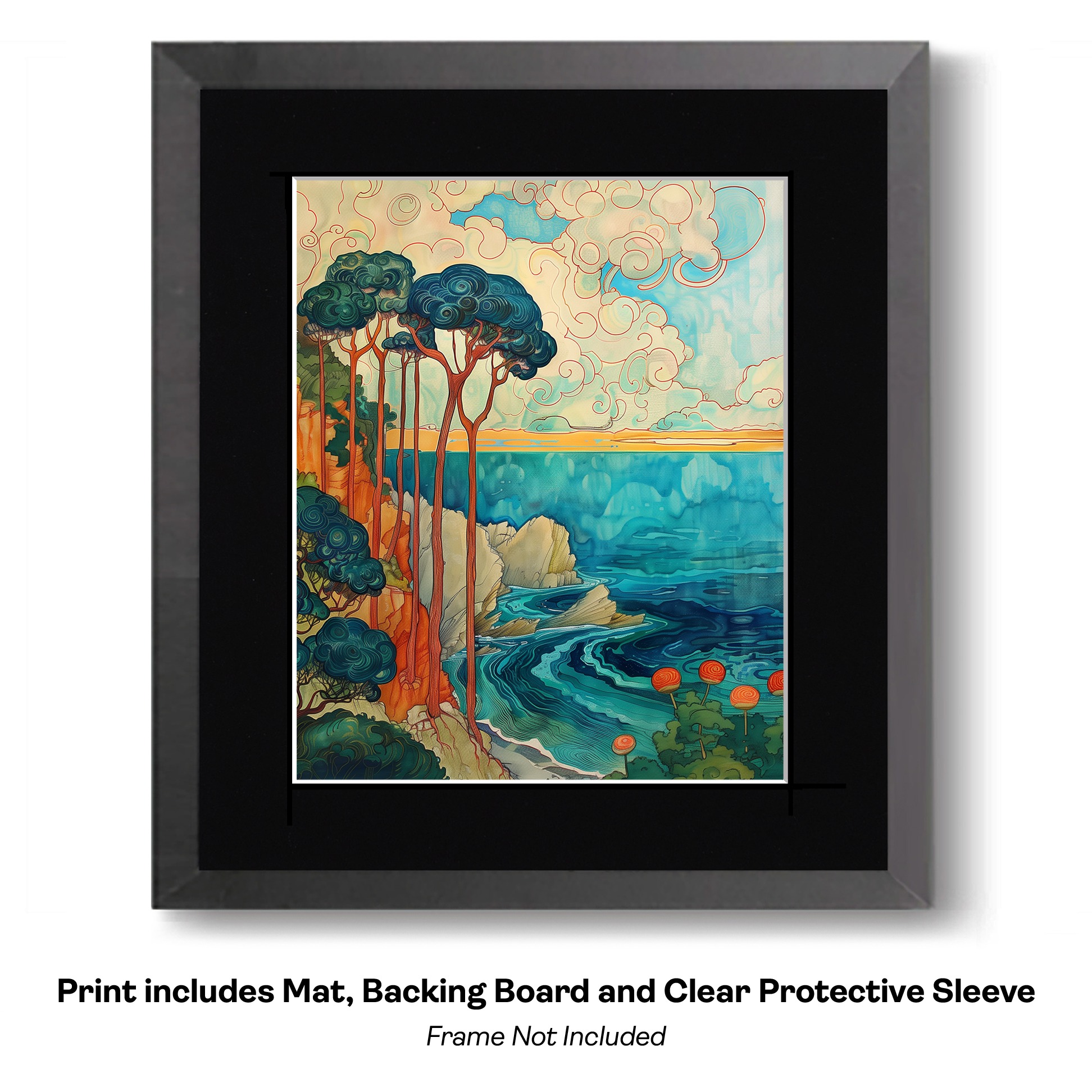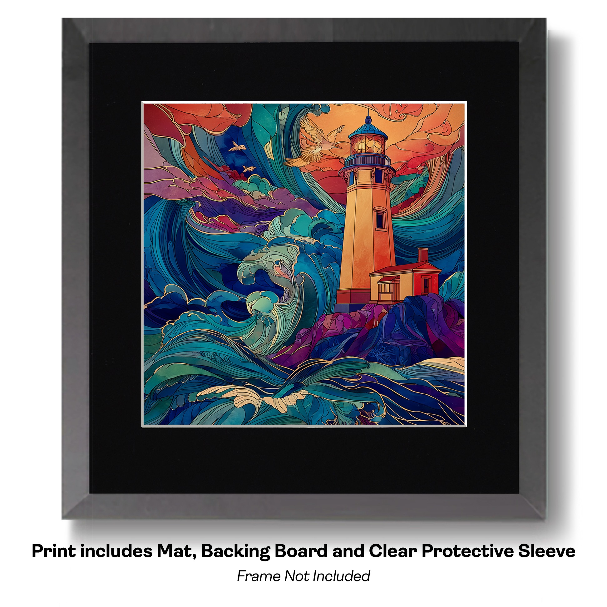 Art Nouveau Lighthouse Art Print – Art Nouveau Style 8″x8″ Artwork for 12″x12″ Frame
