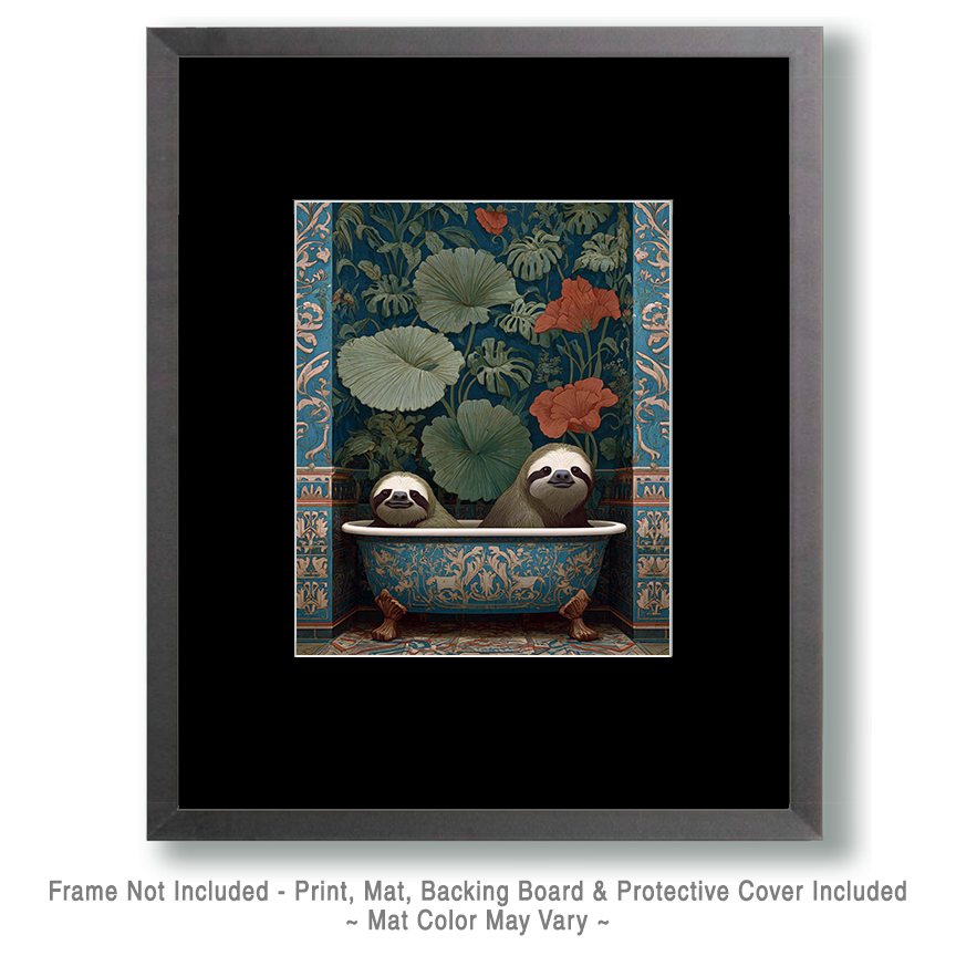 Art prints featuring Sloths in a Bathtub fit perfectly with cheerful interior styles such as whimsical home decor, fun bathroom decor, and quirky wall art, where playful imagery adds personality and humor to a space. These prints also work beautifully with boho home decor, eclectic decor, and colorful gallery wall decor, where lighthearted animal art becomes a fun focal point. Shoppers frequently search for sloth wall art, funny sloth art, cute animal prints, and bathroom wall decor, making this type of artwork especially appealing to customers looking for joyful, conversation-starting pieces.