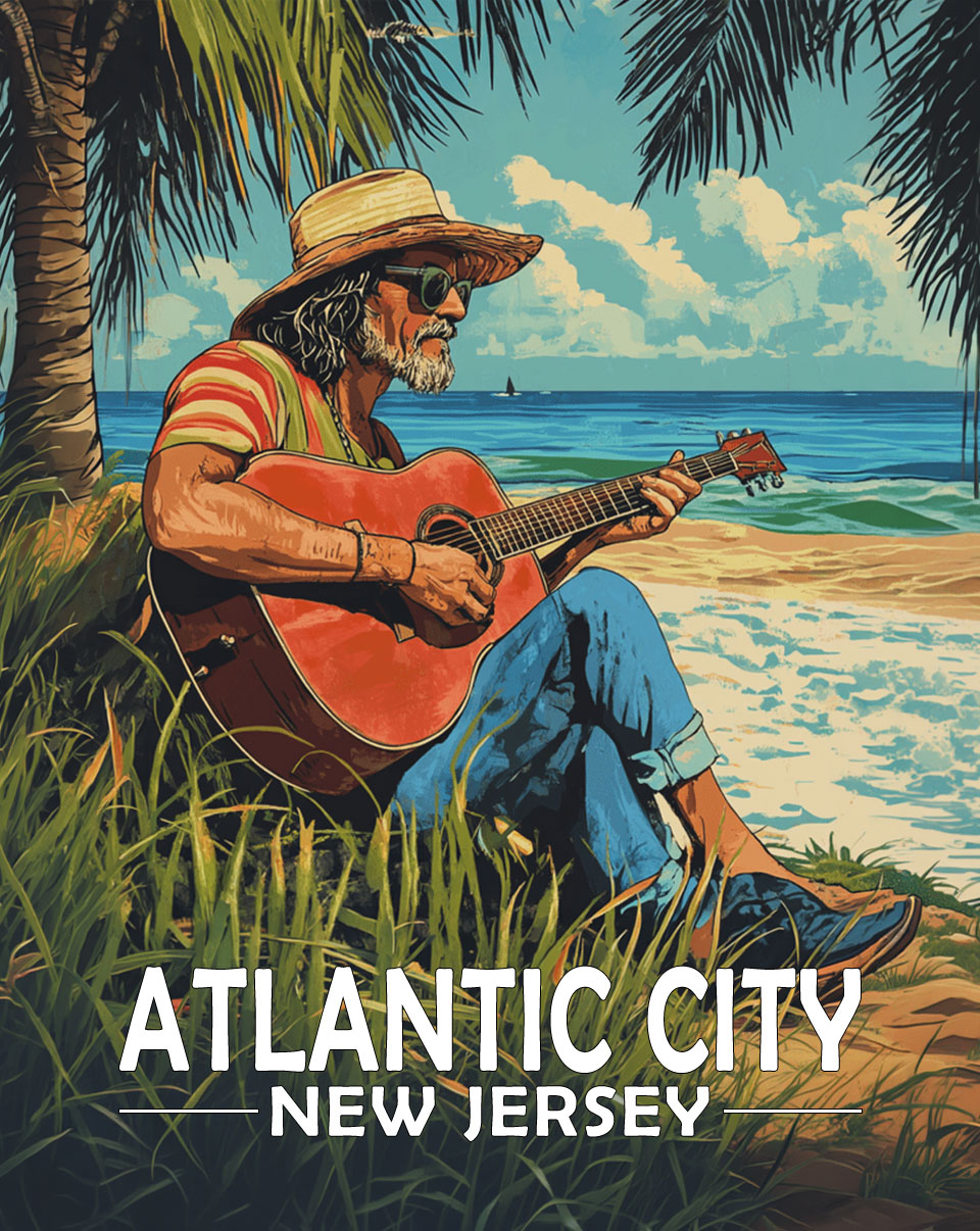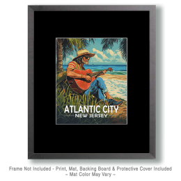 Atlantic City, New Jersey Souvenir Art Print – Old Surfer Dude Playing Guitar