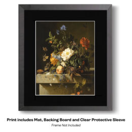 All prints have an acid-free matte with a cardboard backing board and are packaged in a clear protective bag.