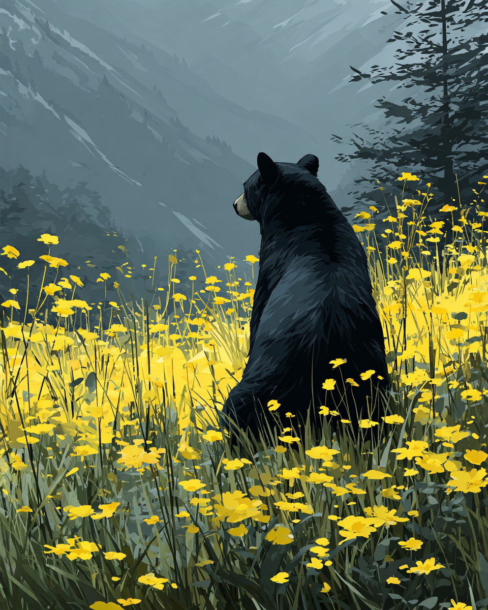 Bear Contemplating Life Among Spring Flowers – Wildlife Art Prints