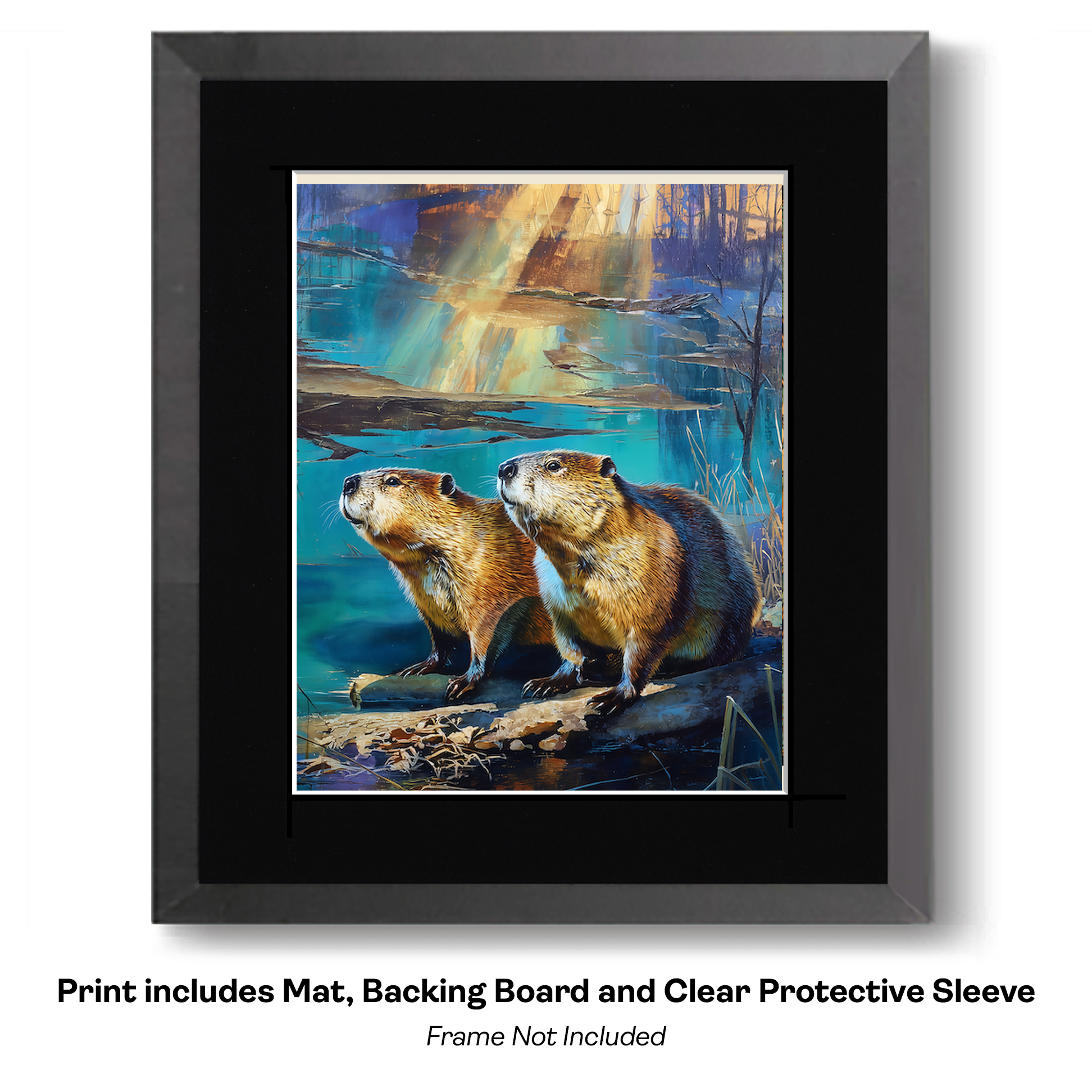 Beavers at Daybreak Art Print – Nature & Wildlife Home Decor Wall Art
