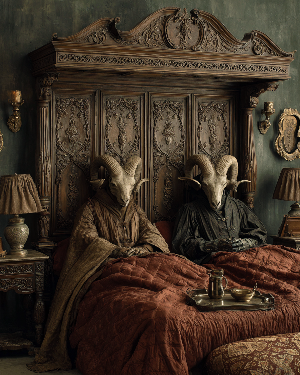Cryptid Ozark Howler Couple in Bed – Cryptozoology Artwork for Bedrooms