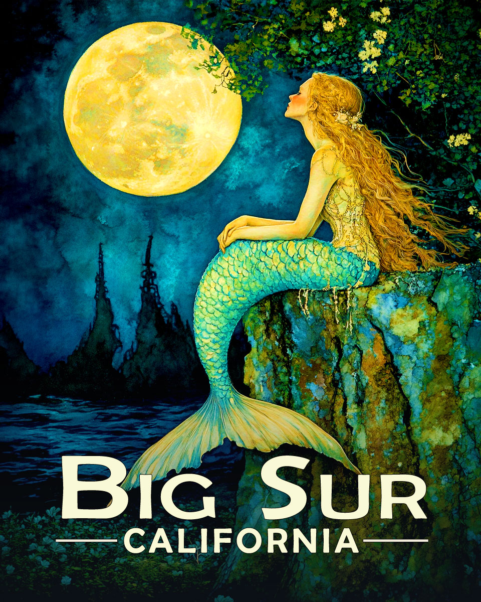 Big Sur California Souvenir Art Print – Contemplating Mermaid