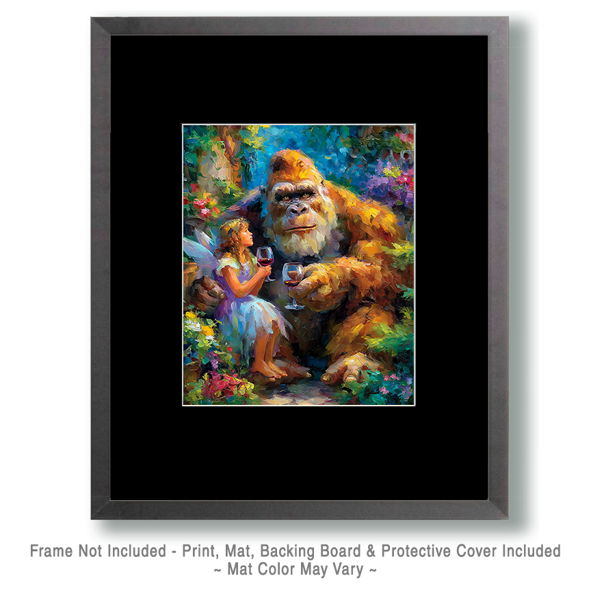 Bigfoot and a Fairy Enjoy Some Wine – Fairy Wall Art