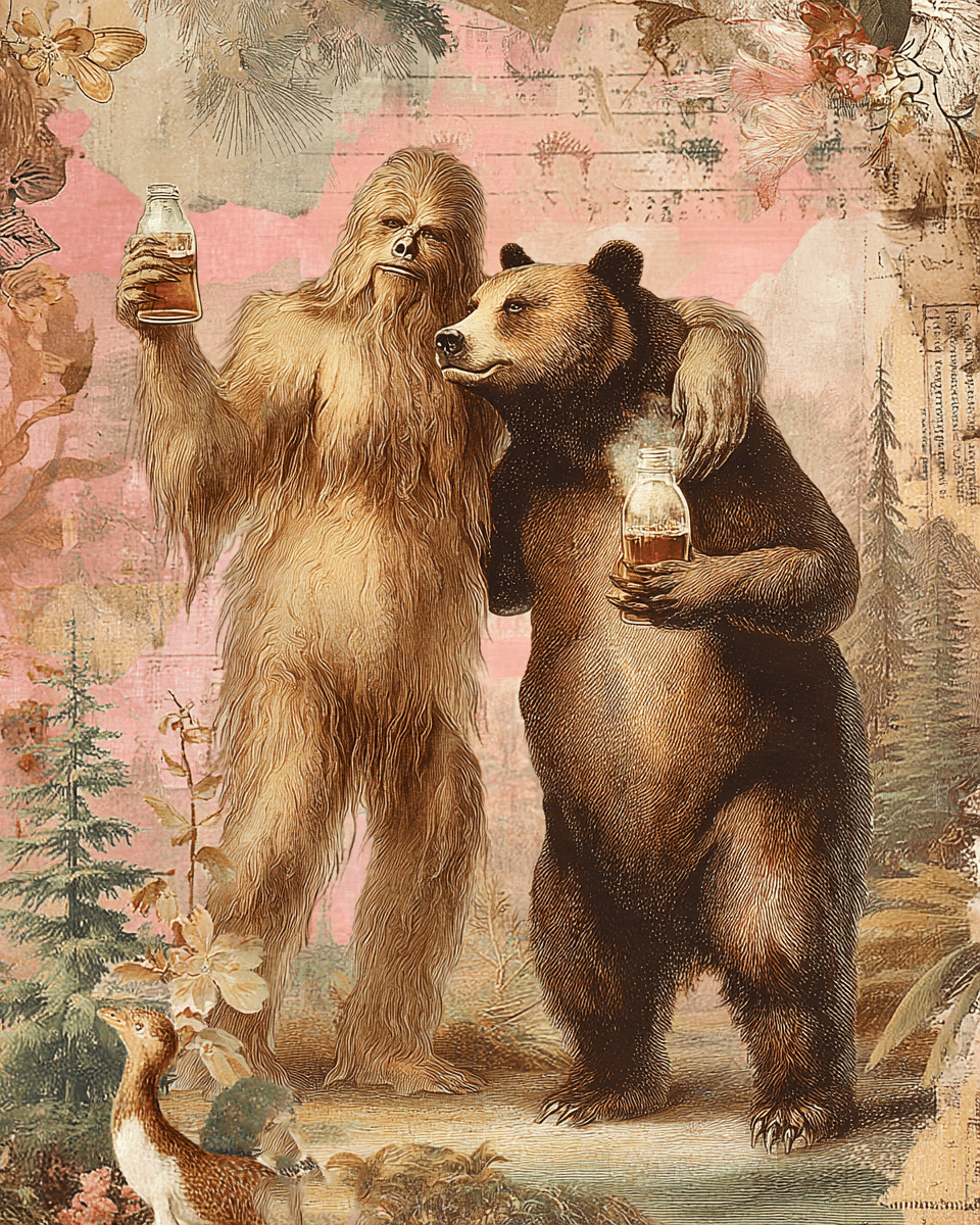 Bigfoot & Bear Celebrate! Mysterious Home Decor Wall Art