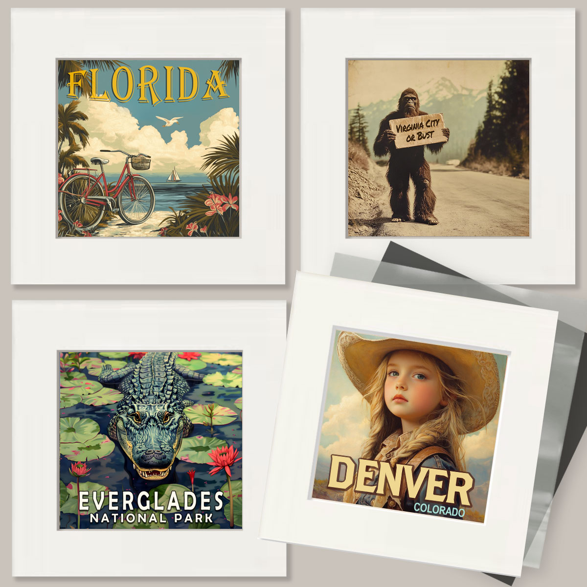 All prints have an acid-free matte with a cardboard backing board and are packaged in a clear protective bag.