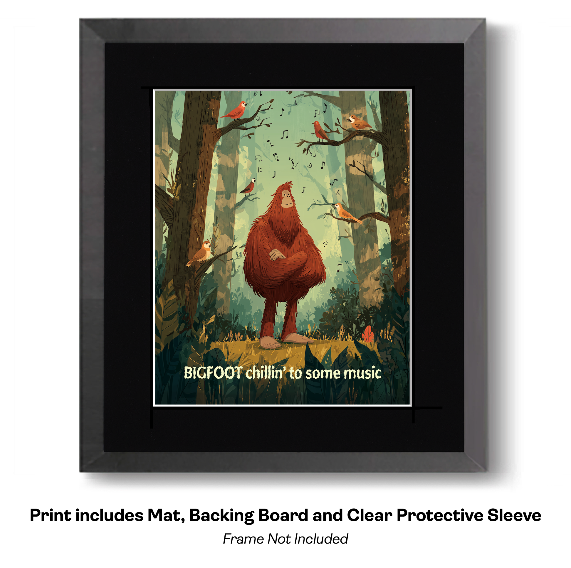 Humorous Bigfoot art prints work especially well in home décor styles that embrace personality, storytelling, and a sense of fun. In rustic cabins, lodges, and mountain homes, funny Bigfoot wall art fits naturally alongside wood textures, vintage signage, and outdoor-inspired décor, reinforcing a relaxed, adventurous vibe. These prints also shine in eclectic and modern rustic interiors, where Bigfoot art prints add a playful focal point without overpowering the space. In casual family rooms, home offices, or game rooms, humorous wildlife art brings warmth and conversation-starting charm, making it ideal for décor styles that value comfort, humor, and a lighthearted connection to the outdoors.