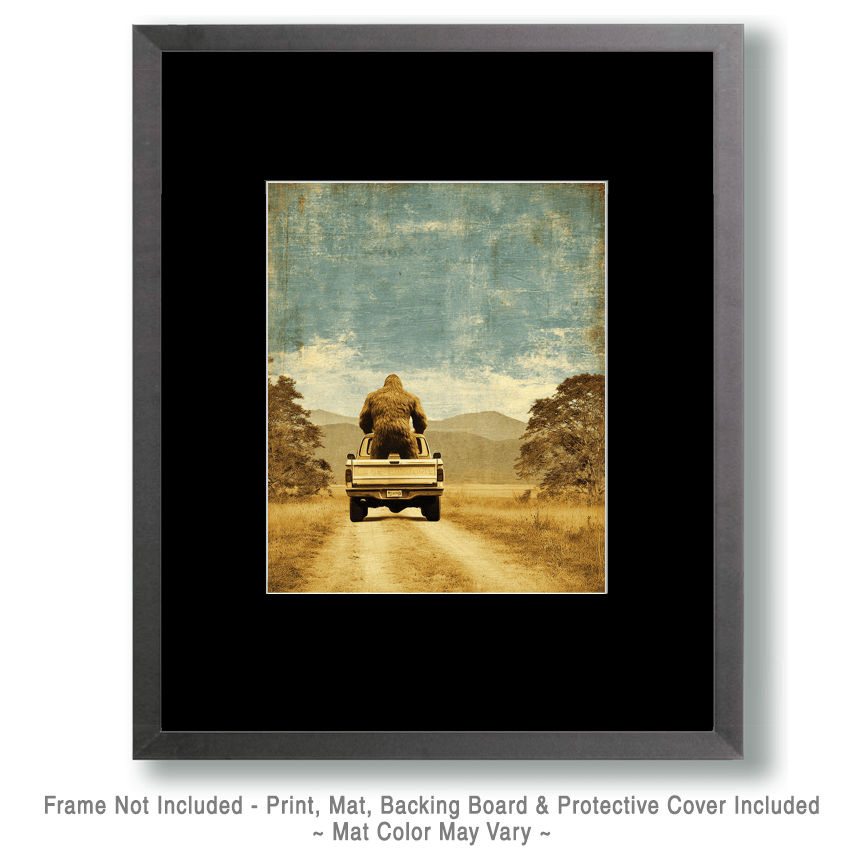 Bigfoot Joy-Riding in Back of a Pickup Truck Art Print – 8″x10″ Artwork for 11″x14″ Frame