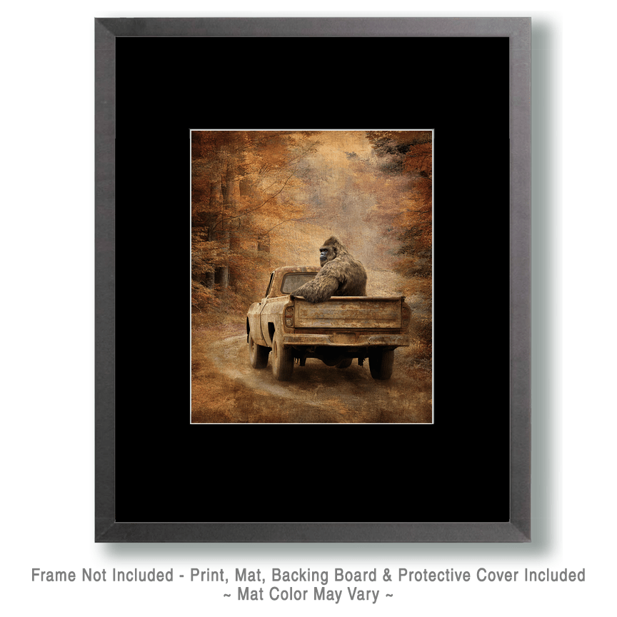 Bigfoot Riding in a Pickup Truck – Mysterious Home Decor Wall Art