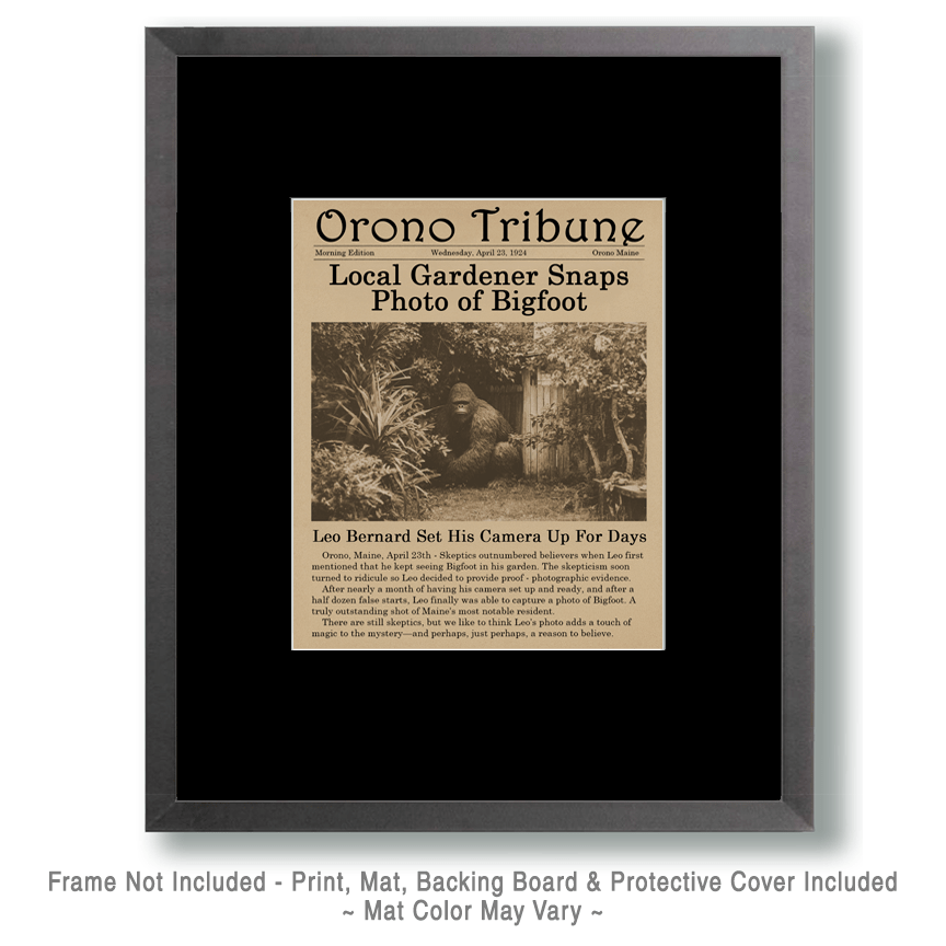 Bigfoot Antique Style Newspaper Story as Home Decor Wall Art