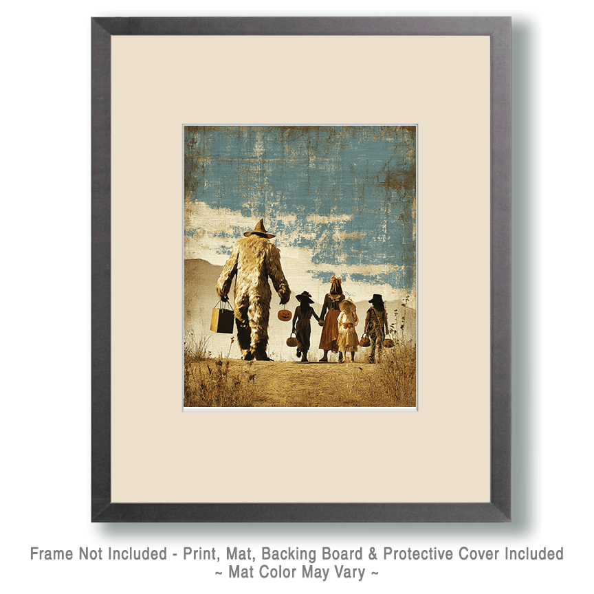 Bigfoot Witch Heading Home After Trick or Treating Halloween Art Print – 8″x10″ Artwork