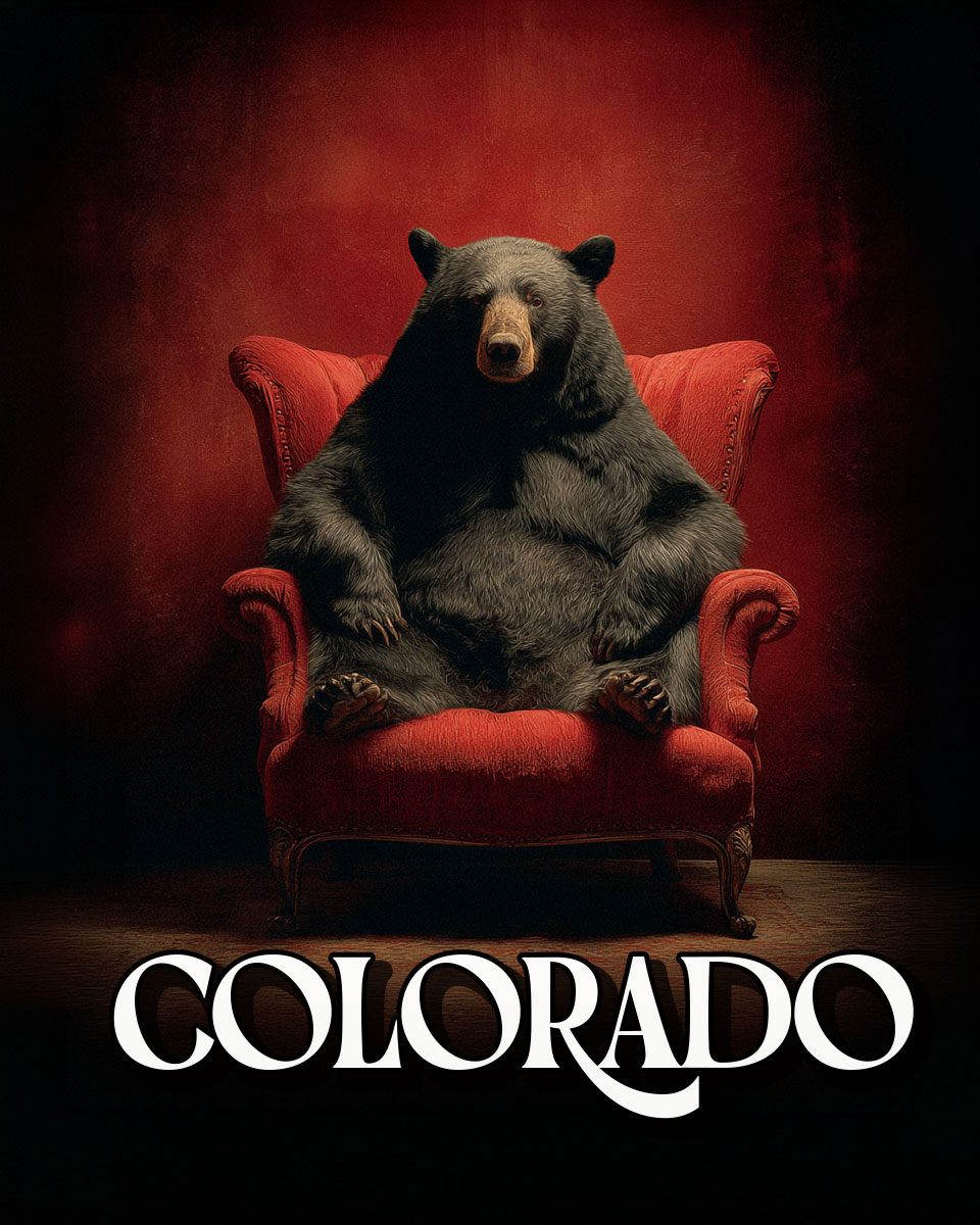 Black Bear in Red Chair – Colorado Souvenir Art Print