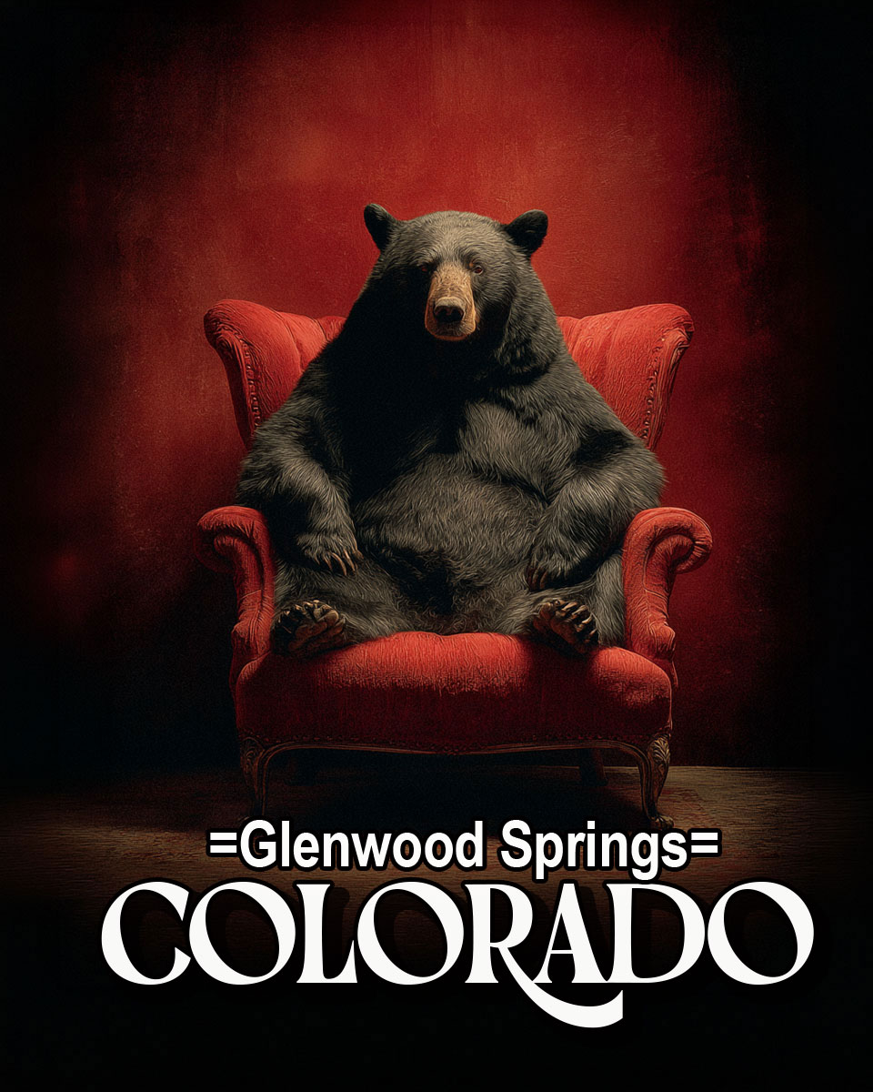 Black Bear in Red Chair – Glenwood Springs Souvenir Art Print
