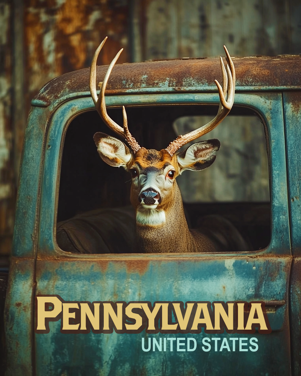 Buck in Pickup – Pennsylvania Deer Art Prints – 8″x10″ Artwork for 11″x14″ Frame
