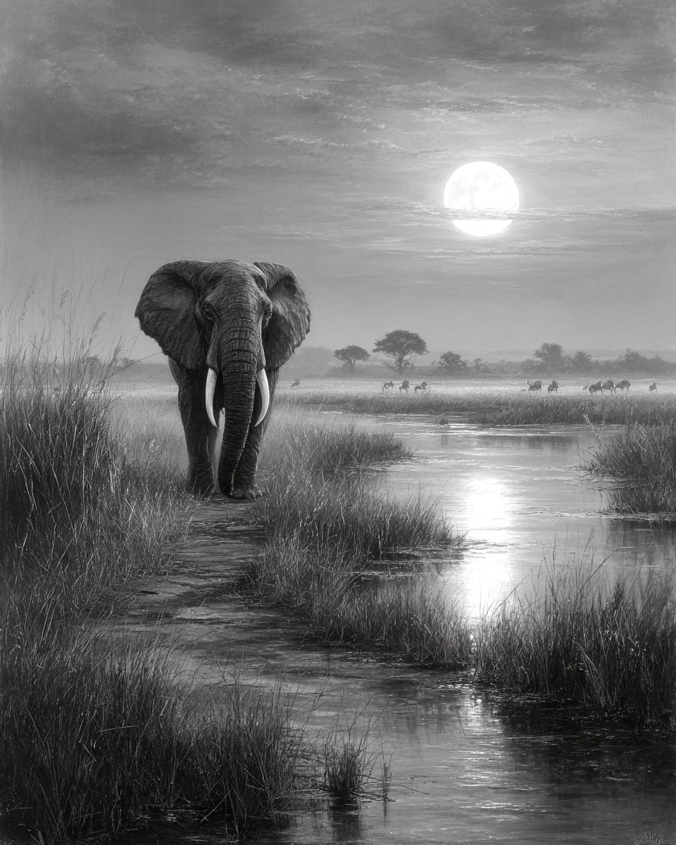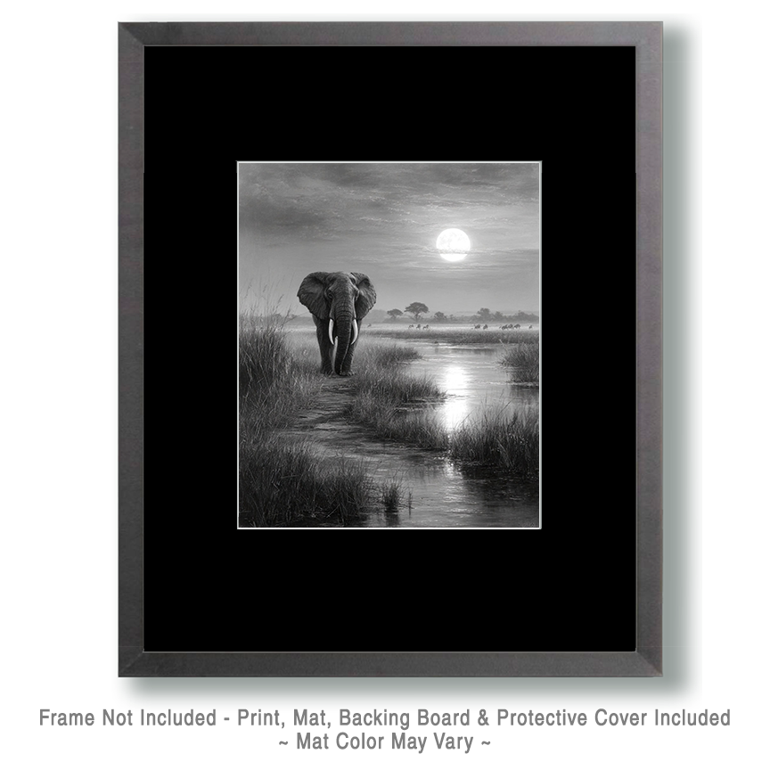 Bull Elephant Heading Home – Black and White Wildlife Art Print