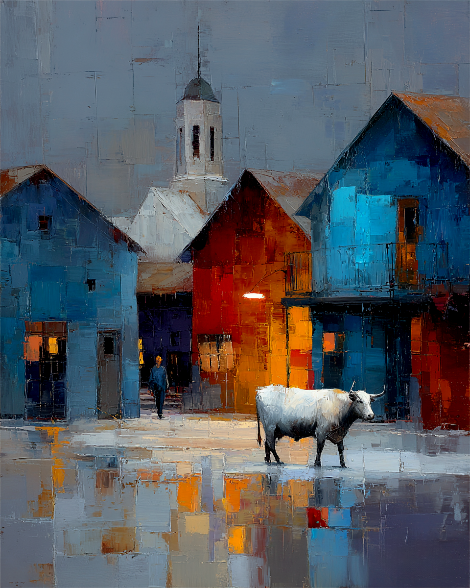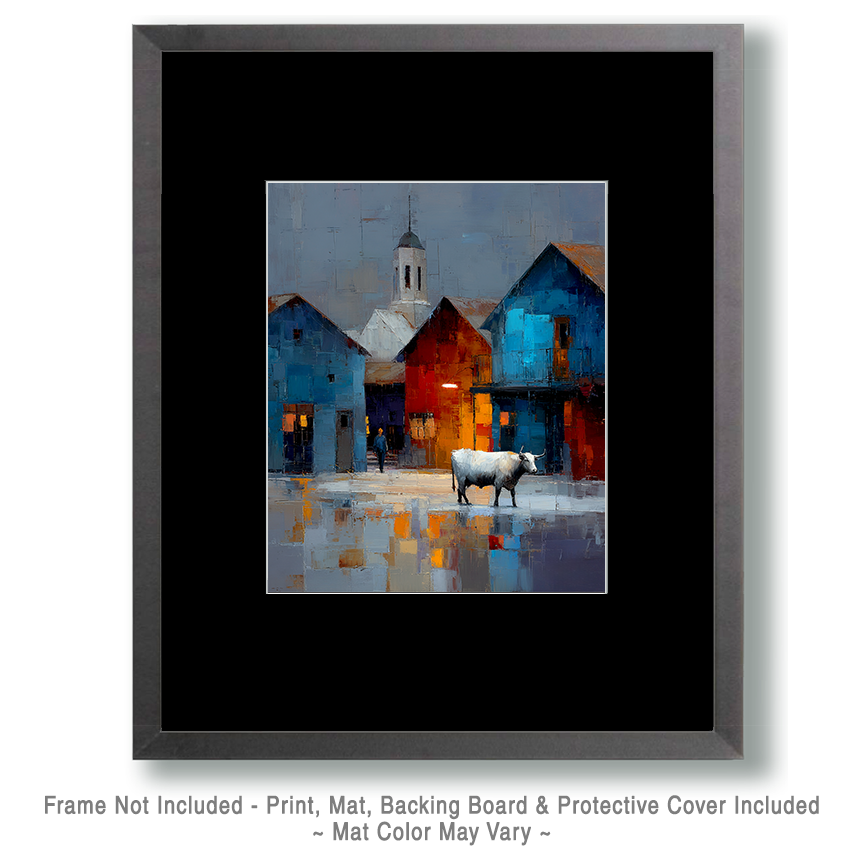 Bull Walks Through Town Farm Life 8″x10″ Artwork for 11″x14″ Frame