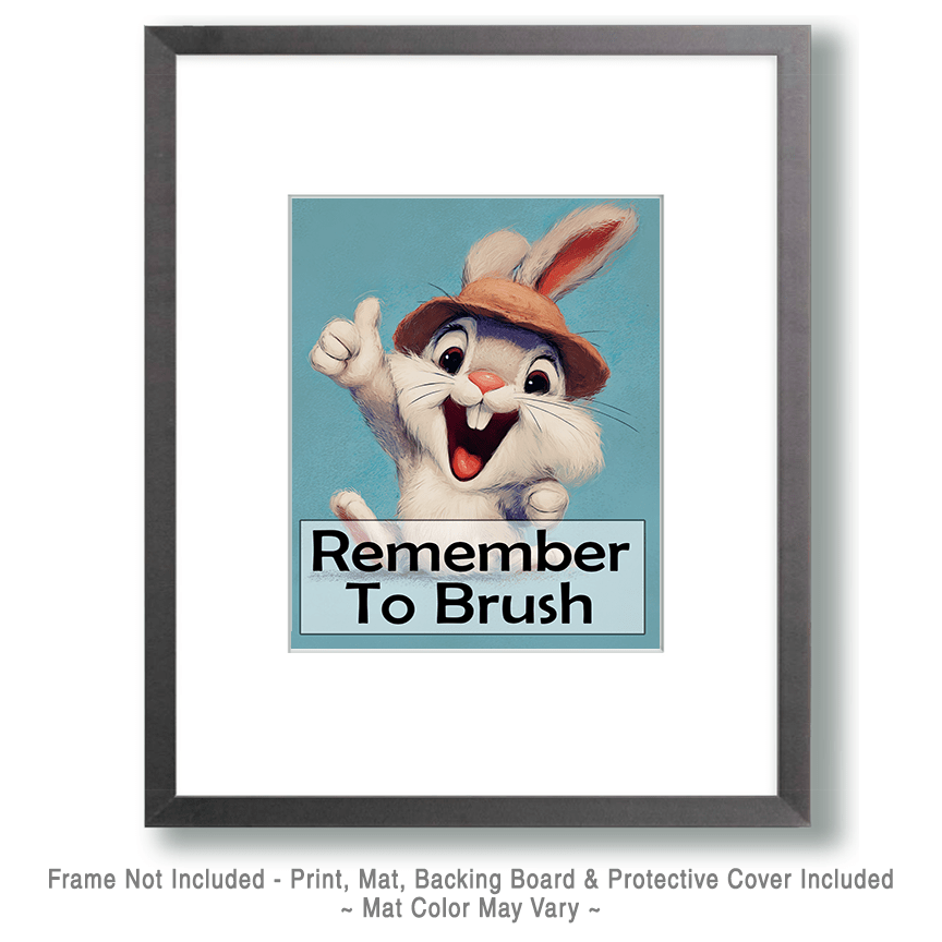 Bunny Rabbit “Remember to Brush” Kid’s Art Print – 8″x10″ Artwork