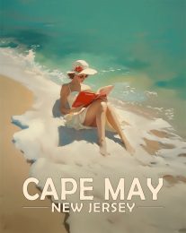 Cape Cod, Massachusetts Souvenir Art Print – Oblivious Reader on the Beach