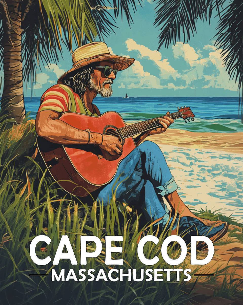 Cape Cod, Massachusetts Souvenir Art Print – Old Surfer Dude Playing Guitar