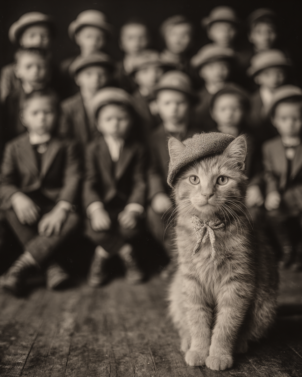 Photobombs Early American Class Picture – Cat & Kitten Home Decor Wall Art