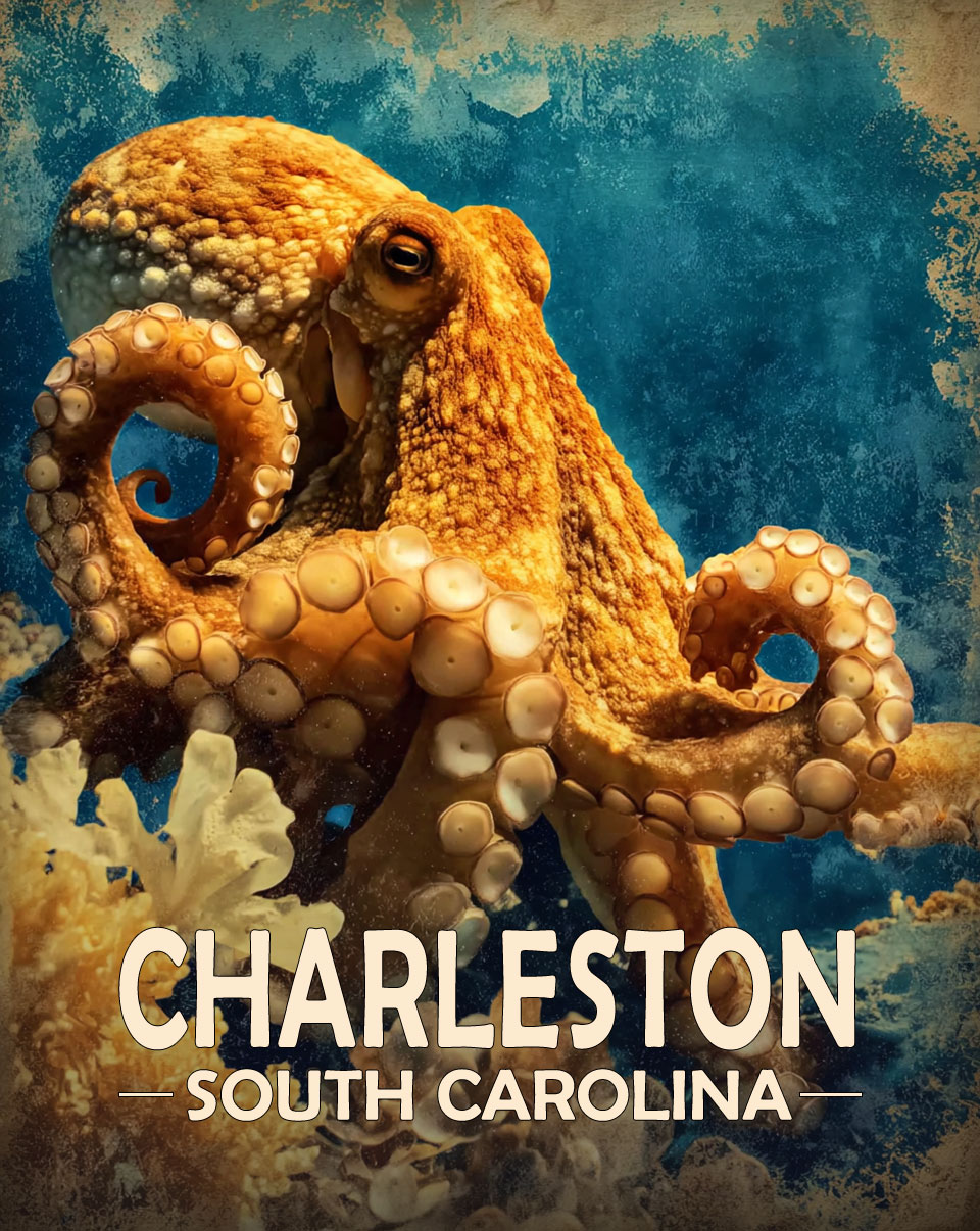 Charleston, Noth Carolina Souvenir Art Print – Vintage Style Octopus