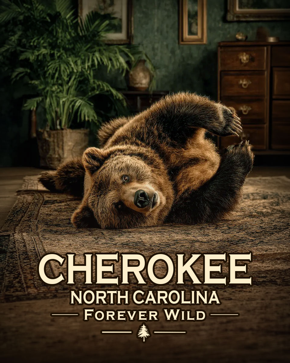 Cherokee, North Carolina – Forever Wild – Bear Playing on Rug