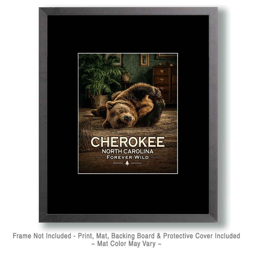 Cherokee, North Carolina bear art prints fit naturally into grounded interiors like Appalachian cabin decor, Smoky Mountain lodge decor, and heritage rustic decor, giving retailers a location-rich category that feels authentic and culturally connected. These pieces pair seamlessly with Cherokee NC wall art, black bear wall art, and Great Smoky Mountains decor, helping shoppers bring the spirit of the region into their homes through warm textures and familiar wildlife imagery. Because Cherokee souvenir art ties directly to travel memories and regional identity, it stands out on the sales floor, encouraging longer browsing and stronger emotional buying decisions.