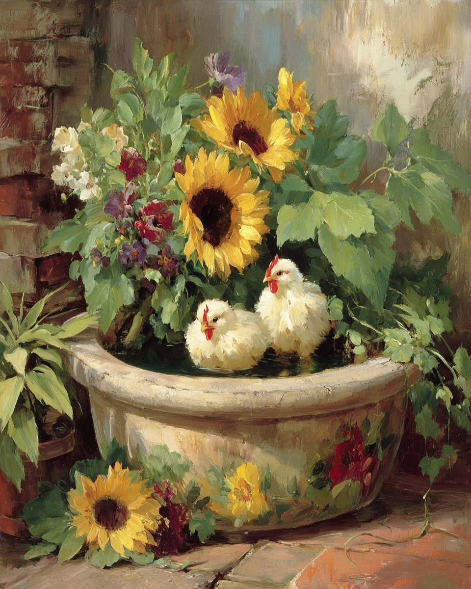 Chicks in an Old Tub – Animal Bathtub Art Prints