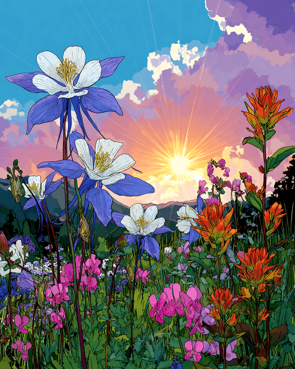 Columbine & Indian Paintbrush Mountains Nature Art Print – 8″x10″ Artwork for 11″x14″ Frame