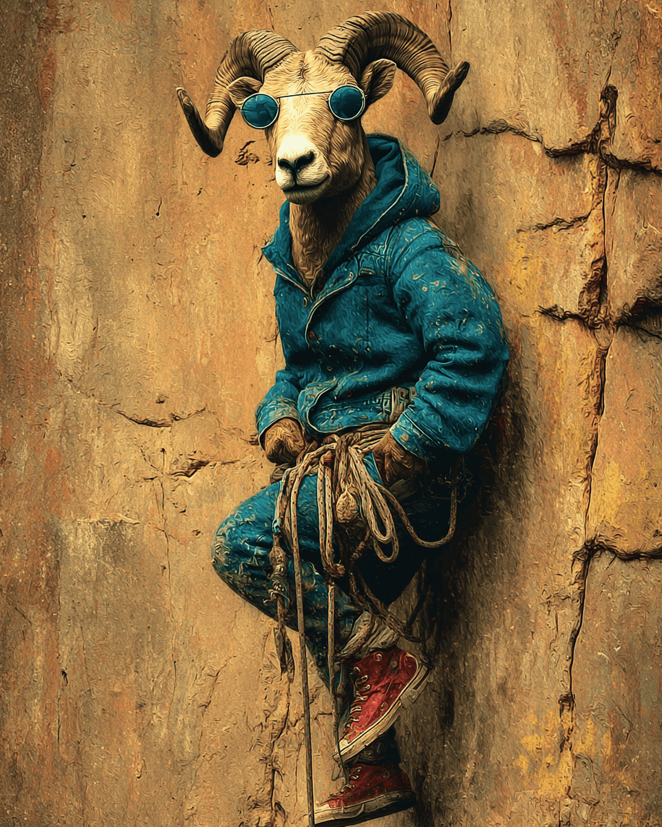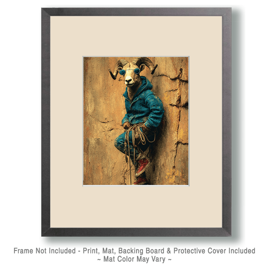 Cool Bighorn Mountain Climber Anthropomorphic Home Decor Wall Art