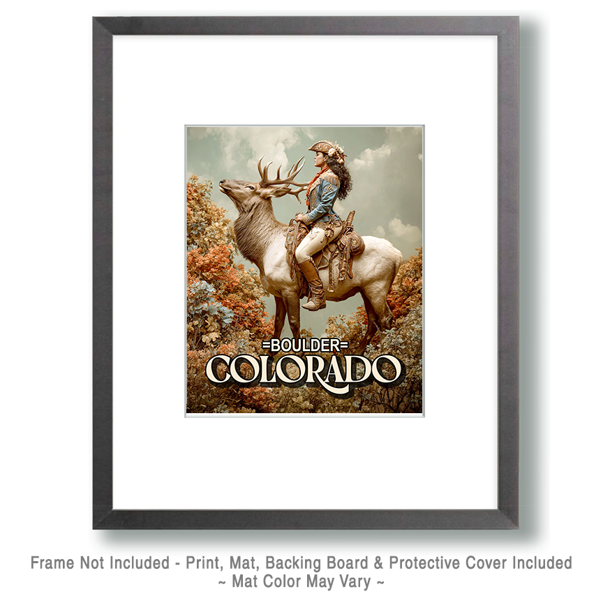 Cowgirl and Elk – Boulder Colorado Souvenir Art Print.jpg