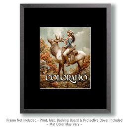 Cowgirl and Elk – Colorado Souvenir Art Print