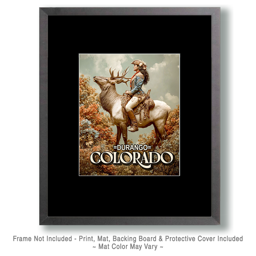 Cowgirl and Elk – Durango Souvenir Art Print
