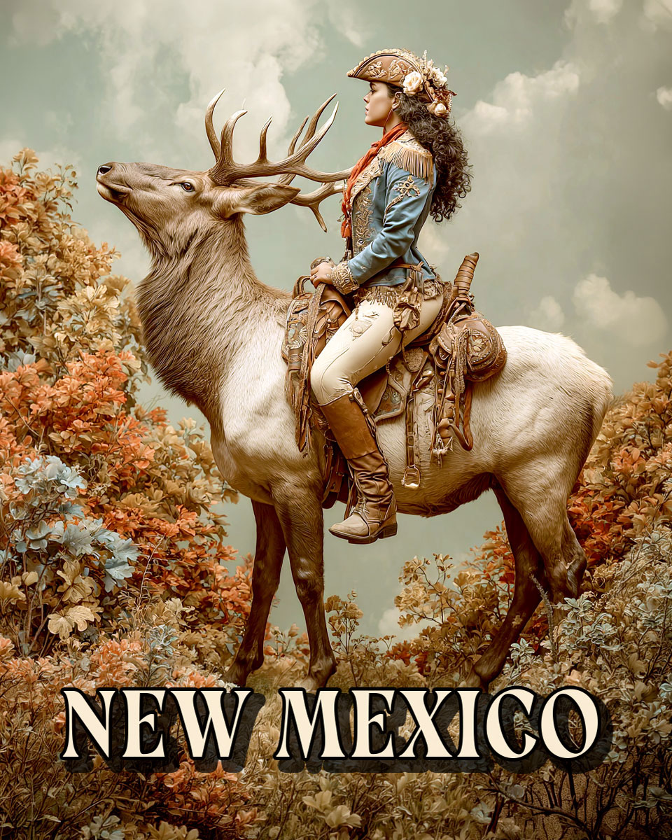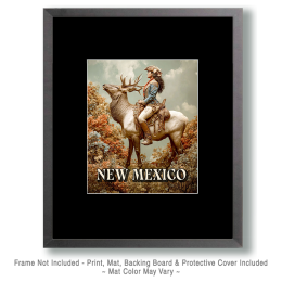 Cowgirl and Elk – New Mexico Souvenir Art Print
