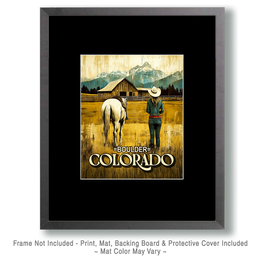 Cowgirl and Her Horse by the Barn – Boulder Colorado Souvenir Art Print