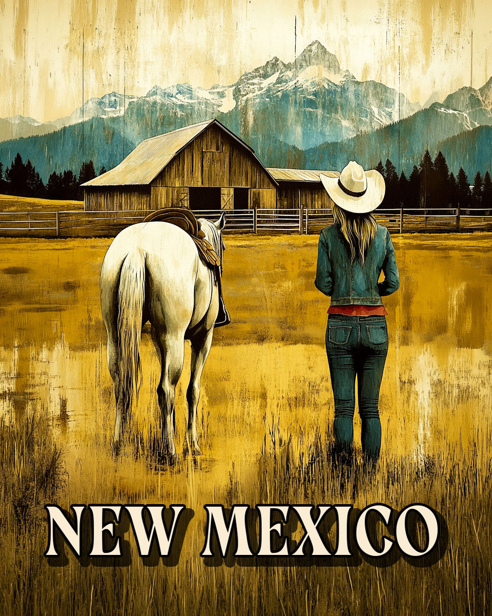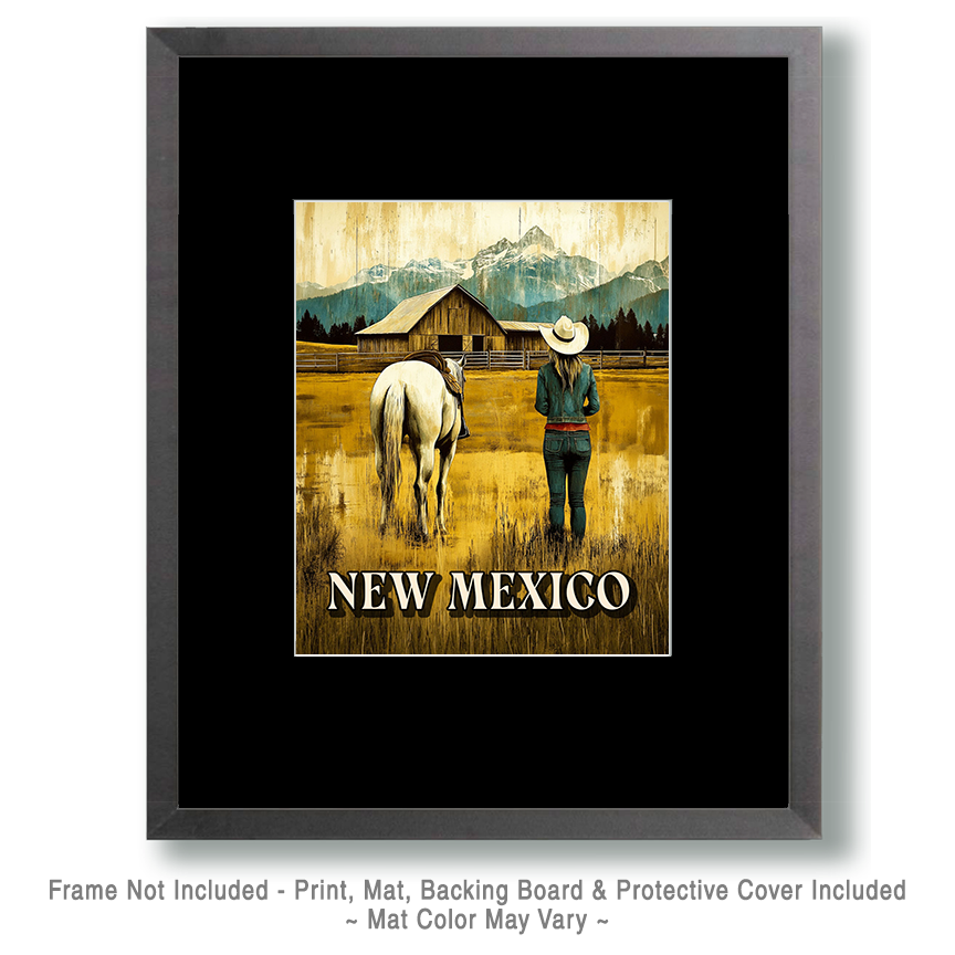 Cowgirl and Her Horse by the Barn – New Mexico Souvenir Art Print